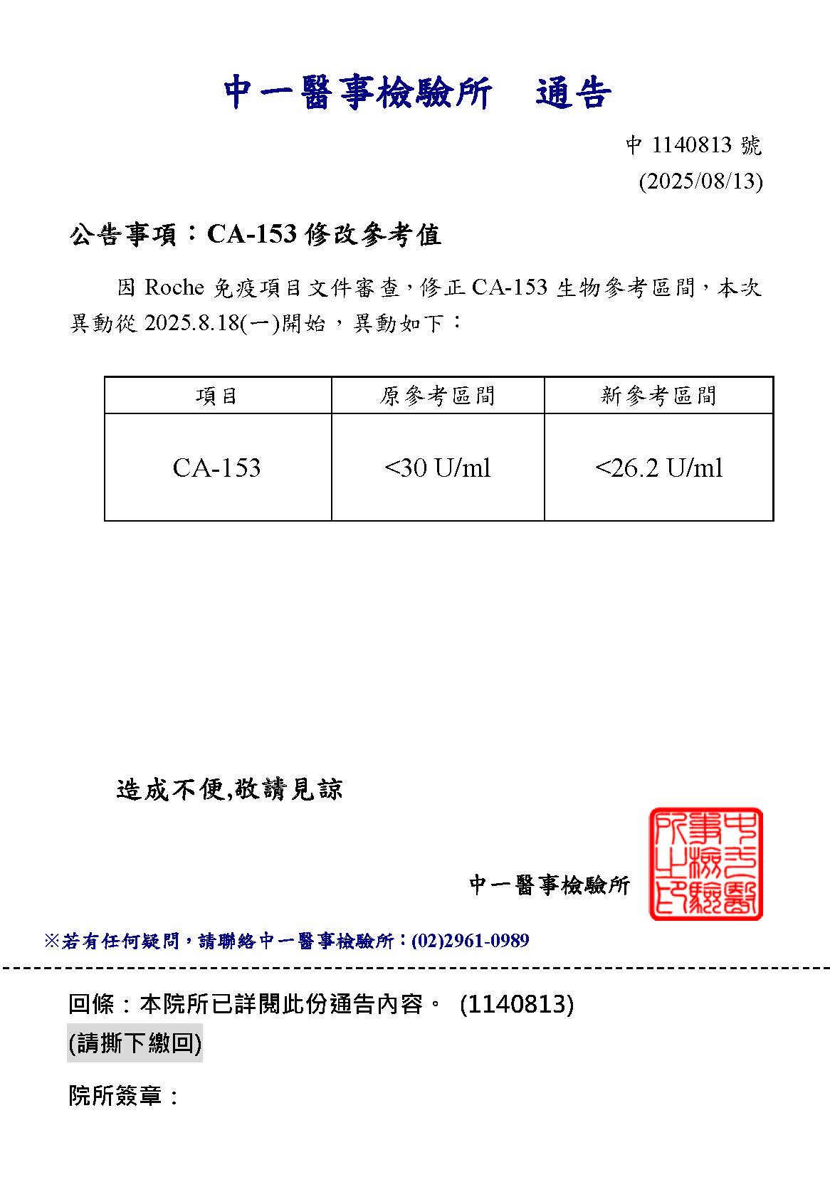 1140813-CA153生物參考區間異動
