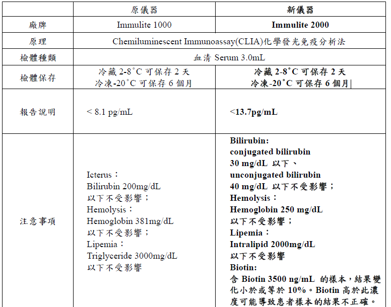 原定2025年11月17日更動檢驗項目TNF-α(α型腫瘤壞死因子)檢驗儀器,